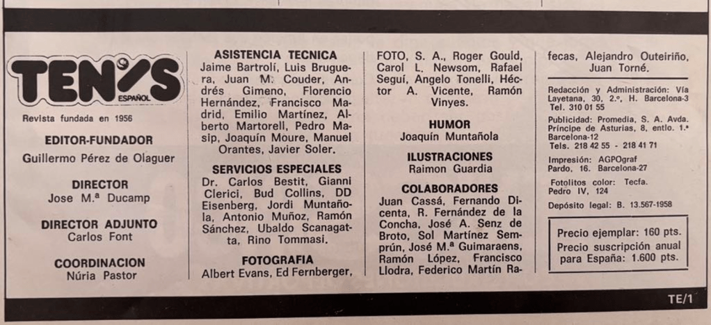 Mi marcha del país programada para el mes de junio la adelanté a finales de marzo con el fin de gestionar con la revista Tenis Español –por entonces el único nexo de este deporte con la familia tenística nacional- la inclusión de la tesina, por capítulos, en sus sucesivas publicaciones.